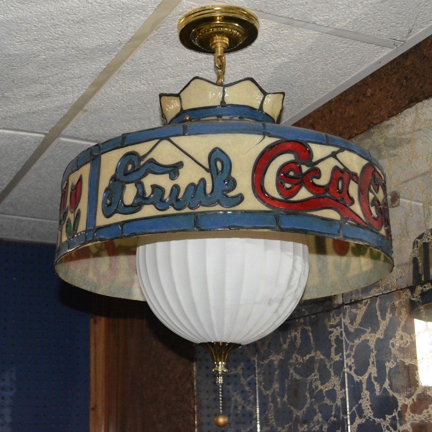 607: Coca Cola Glass Ceiling Light Fixture : Lot 607